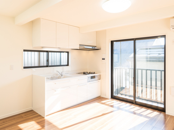 お打ち合わせの最初の段階では、アパートなので仕様をリーズナブルなもので提案しました。しかし、お打ち合せを進めるにつれ、ご自分でも住めるような仕様をご希望され、入居者に快適に住んでいただきたいという施主様の気持ちを受け、通常のアパートより1つ、2つ上のデザイナーズアパートメントを目指して計画しました。ワンルーム2つを1つにまとめ、ファミリータイプの2DKに改造しました。また、若い世帯の入居を希望するということで、最新設備は戸建て仕様で仕上げました。
