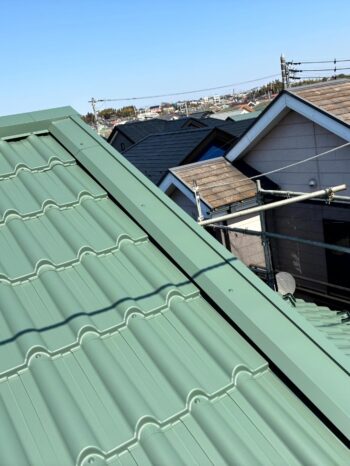 | 使用商材 | 稜線瓦葺62型、グラスコート無機F、ネオレリーフ、FRP2ply |